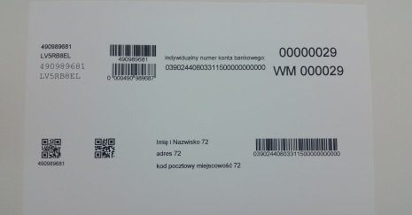 Personalizacja/numeracja jest fizycznie nanoszona na każdy arkusz co zapewnia, że wszystkie dane jak numeracja, numery indywidualnych kont bankowych, kody kreskowe itp. są wyraźne i czytelne.