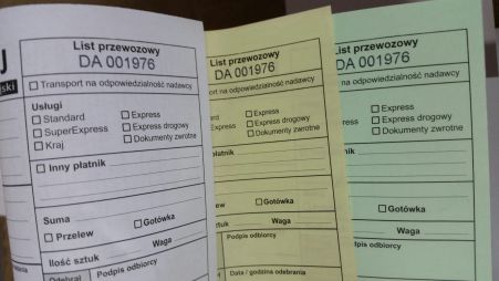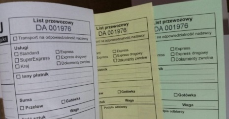 LISTY PRZEWOZOWE, UMOWY, POLISY UBEZPIECZENIOWE, POTWIERDZENIA ODBIORU, DRUKI AKCYDENSOWE itp.